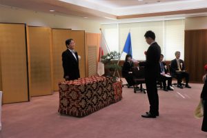 学務企画課総括主査(被表彰者)が謝辞を述べる様子