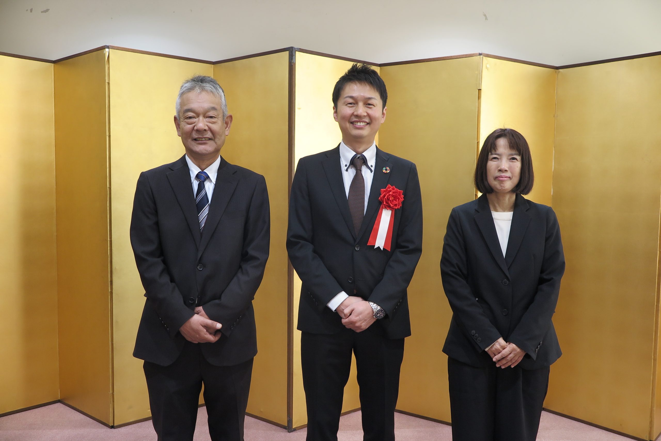 学務部長、学務企画課総括主査(被表彰者)、学務企画課長 3人での記念写真