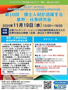 【開催告知】OU-SPRING事業 2025年度 第10回博士人材が活躍する業界・仕事研究会 11月19日(水)13時から開催