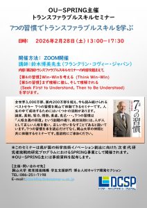OUフェローシップ事業『7つの習慣でトランスファラブルスキルを学ぶ』セミナー開催(告知)